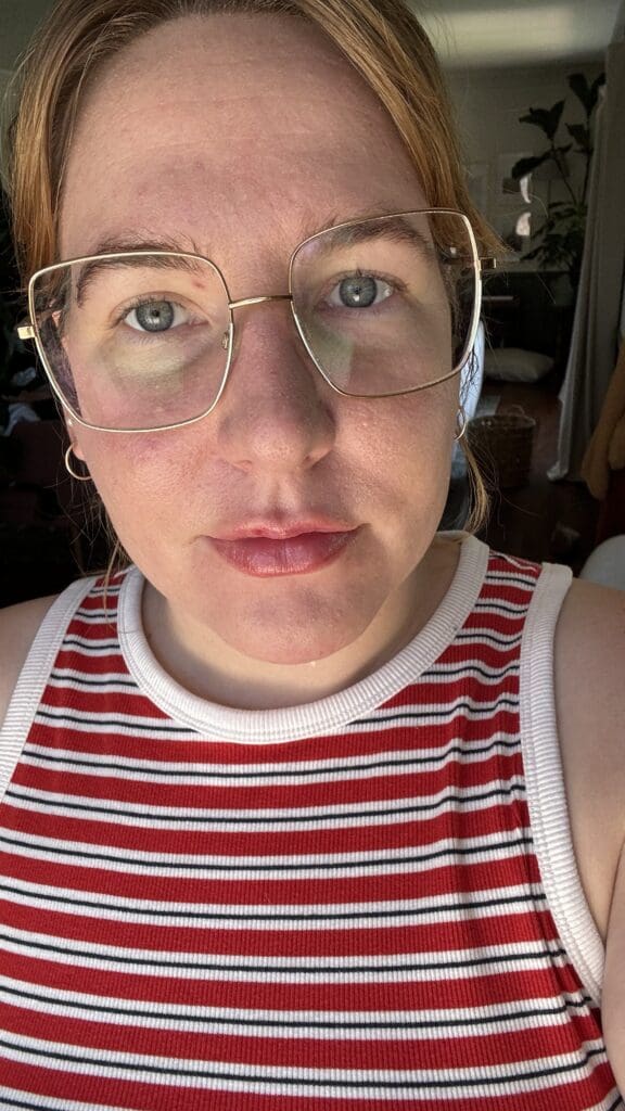 Two weeks later you can really see that half of my face doesn’t smile. AND the other half smiles much less than normal. I felt really tight in my face. To me, even if my pores were invisible (they’re clearly not), I felt like it wouldn’t be worth not being able to smile!